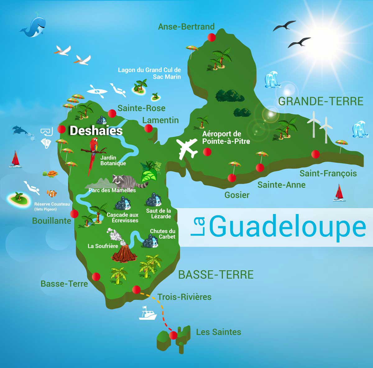 Région insulaire de la France, voir ci dessous la Guadeloupe sur la carte du monde , elle est située dans les îles Sous- le- Vent , faisant partie des Petites Antilles des Caraïbes .