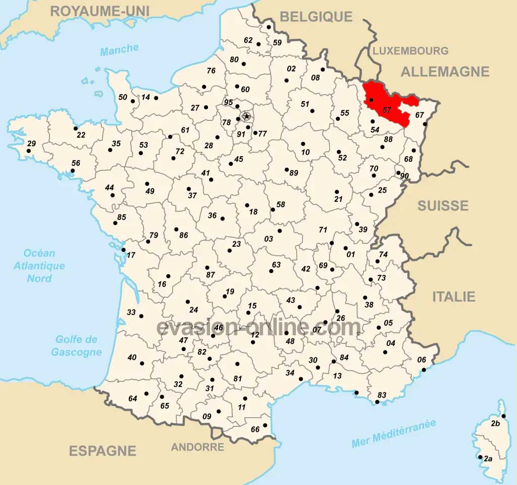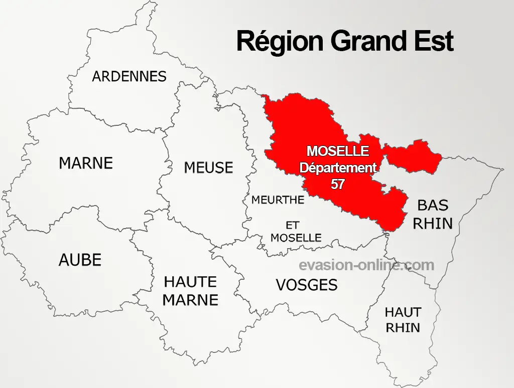 Situé dans le Nord de la France, le département 57 – Moselle -, se trouve au Nord-Est de la région Grand Est.