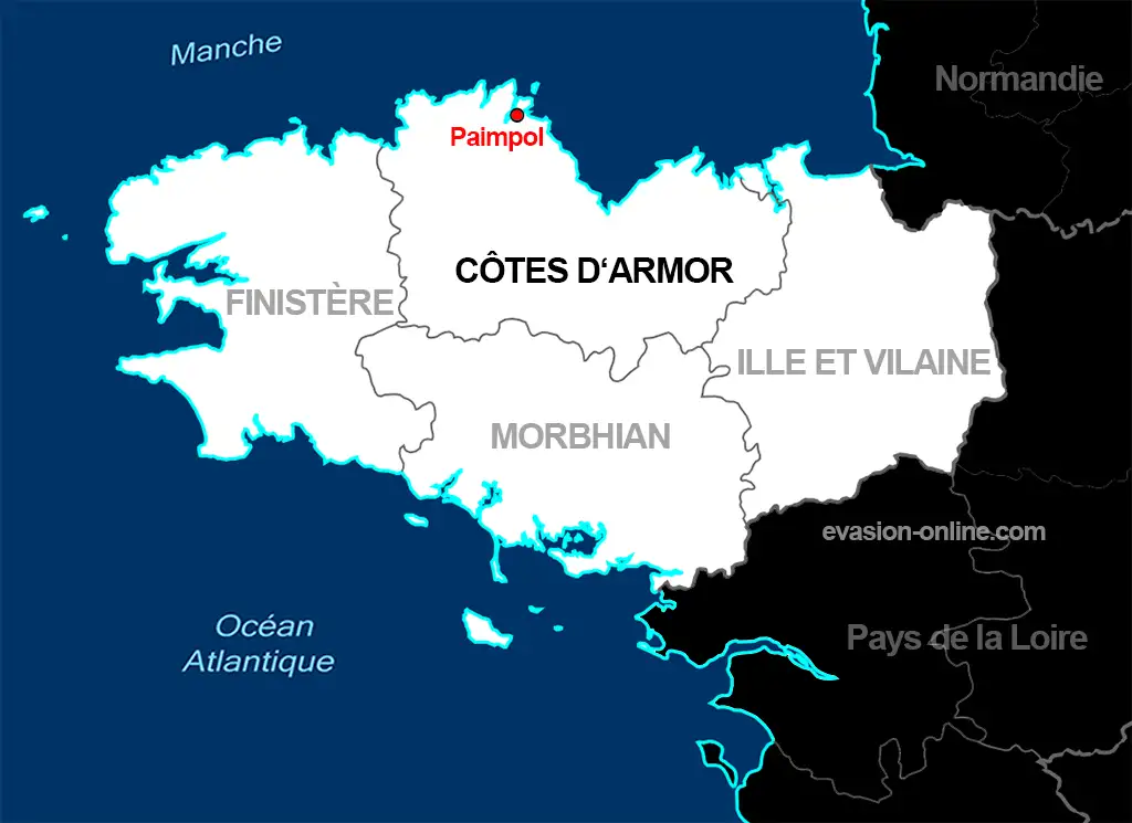 La ville de Paimpol se trouve au Nord des Côtes d’Armor (département 22), dans la région Bretagne. Plus précisément, dans le pays traditionnel de la Haute-Bretagne, Poudouvre.